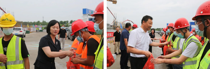 活動中,慰問人員將防暑降溫慰問品送到建設者手上,感謝他們?yōu)闈辖ㄔO所作出的貢獻,并叮囑大家勞逸結合,增強自我防護意識,避免高溫及疲勞作業(yè),統(tǒng)籌抓好疫情防控、安全生產和項目建設工作。