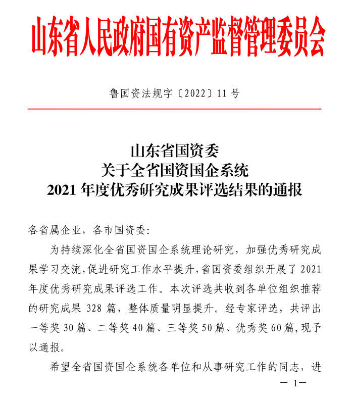 近日,山東省國資委發(fā)布了《山東省國資委關(guān)于全省國資國企系統(tǒng)2021年度優(yōu)秀研究成果評選結(jié)果的通報(bào)》(魯國資法規(guī)字〔2022〕11號)文件,濟(jì)南城市建設(shè)集團(tuán)總工辦牽頭,集團(tuán)所屬山東金宇信息集團(tuán)有限公司研究的《智慧交通異構(gòu)大數(shù)據(jù)可視化決策輔助預(yù)警系統(tǒng)平臺研發(fā)與應(yīng)用》成果榮獲“全省國資國企系統(tǒng)2021年度優(yōu)秀研究成果”一等獎(jiǎng)。
