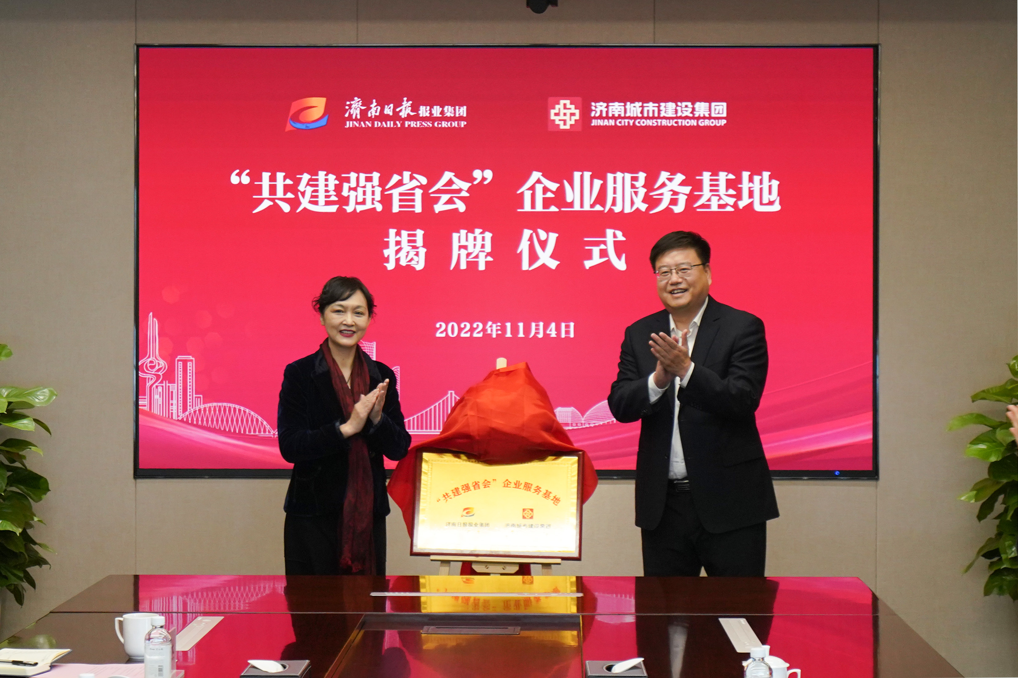 馬利、史海成同志共同為濟南日報報業(yè)集團、濟南城市建設集團“共建強省會”企業(yè)服務基地揭牌。
