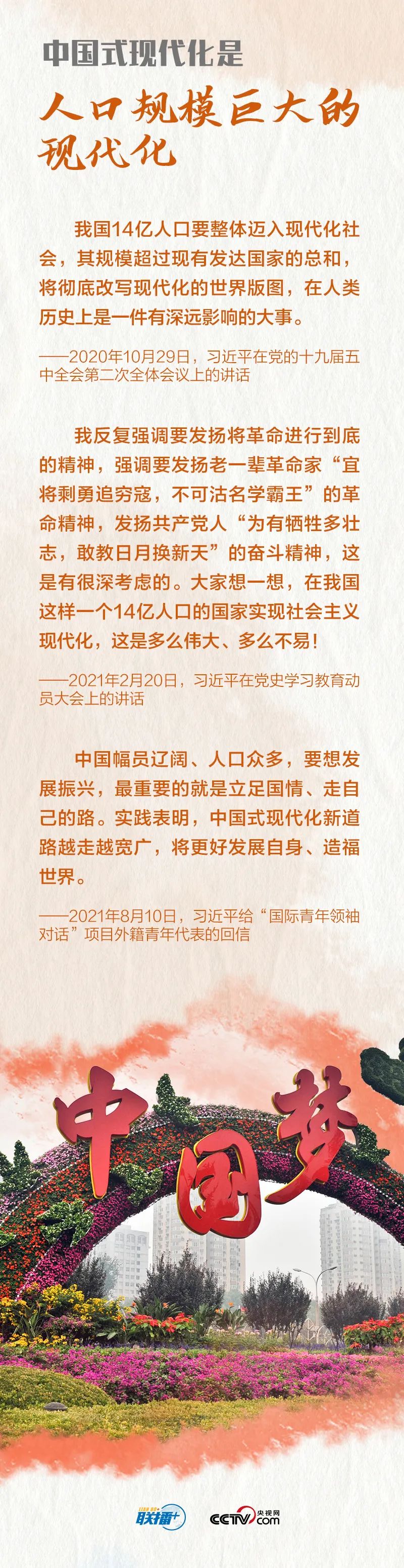 中國式現(xiàn)代化,是中國共產(chǎn)黨領(lǐng)導(dǎo)的社會(huì)主義現(xiàn)代化,既有各國現(xiàn)代化的共同特征,更有基于自己國情的中國特色。這些年,習(xí)近平總書記在不同場(chǎng)合多次深入闡釋中國式現(xiàn)代化,央視網(wǎng)《聯(lián)播+》梳理相關(guān)重要論述,與您一起學(xué)習(xí)。