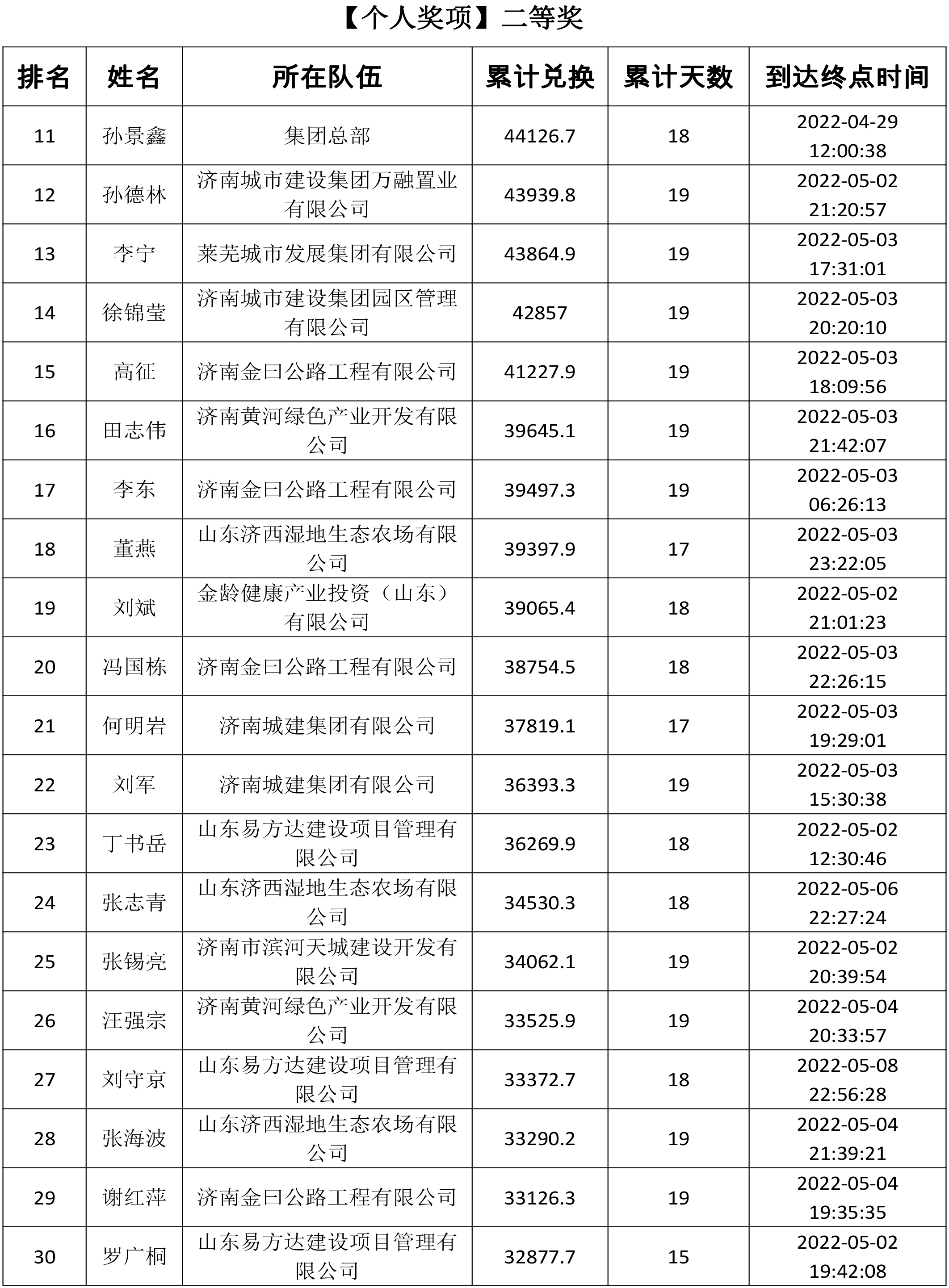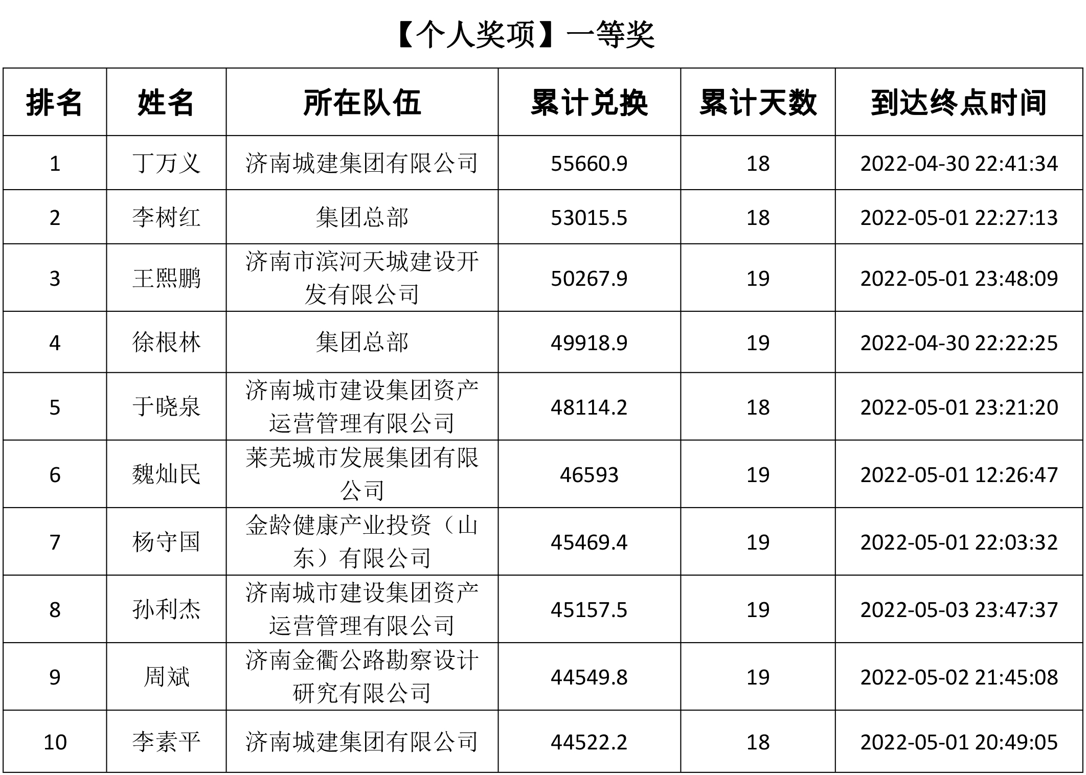 由共青團(tuán)濟(jì)南城市建設(shè)集團(tuán)有限公司委員會(huì)主辦,共青團(tuán)濟(jì)南金曰公路工程有限公司委員會(huì)、濟(jì)南新城文化傳媒有限公司承辦的“青春有夢(mèng) 建設(shè)無(wú)疆”——職工線上健步走活動(dòng)于5月13日正式落下帷幕。此次活動(dòng)共持續(xù)19天,參與人數(shù)達(dá)1716人。