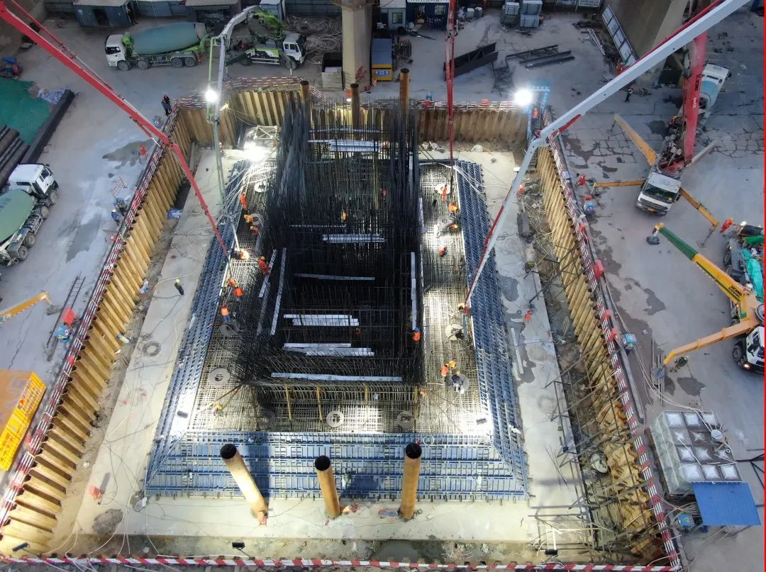 2022年4月18日因濟(jì)南疫情防控政策,項(xiàng)目疫情封控、封閉管理以來,項(xiàng)目部嚴(yán)格落實(shí)各級、各項(xiàng)疫情防控制度,堅(jiān)持一手抓防疫,一手抓施工生產(chǎn),實(shí)現(xiàn)了工地連續(xù)施工,完成了始發(fā)井兩塊底板和一塊頂板共計(jì)3500方混凝土澆筑施工。