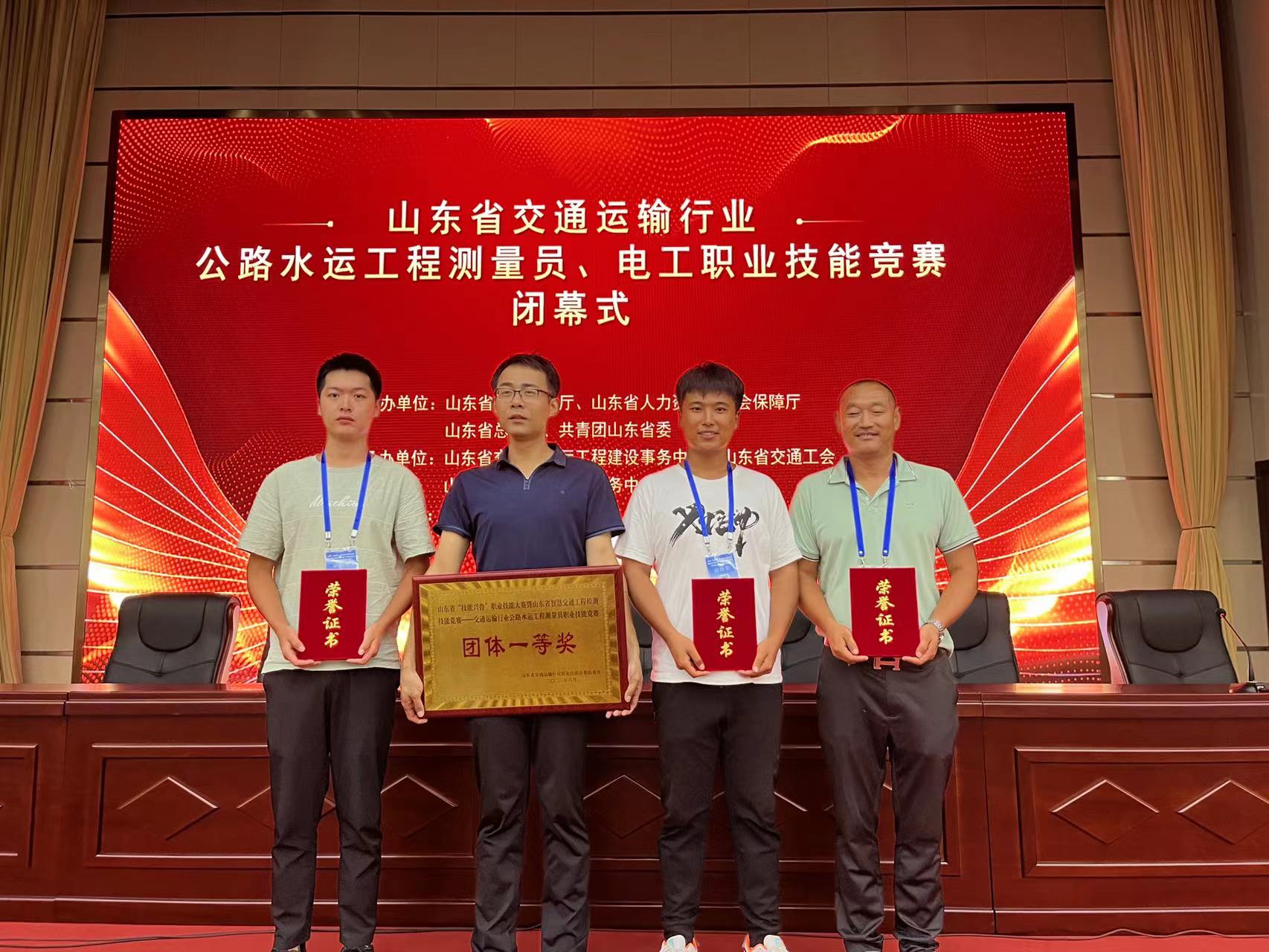 8月28日,金朝公司員工趙凱同志榮獲省“技能興魯”職業(yè)技能大賽暨山東省智慧交通工程檢測(cè)技能競(jìng)賽——交通運(yùn)輸行業(yè)公路水運(yùn)工程測(cè)量員技能競(jìng)賽決賽“個(gè)人一等獎(jiǎng)”,他所屬的濟(jì)南市團(tuán)隊(duì)獲得“團(tuán)體一等獎(jiǎng)”榮譽(yù)稱(chēng)號(hào)。