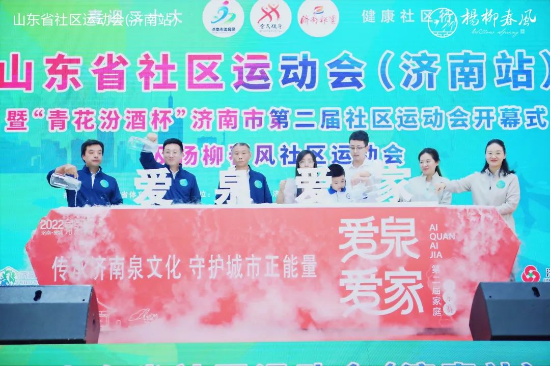 山東省體育局機(jī)關(guān)黨委副書(shū)記孫明星,濟(jì)南市體育局黨組成員、副局長(zhǎng)張居忠,槐蔭區(qū)副區(qū)長(zhǎng)逯明,濟(jì)南日?qǐng)?bào)報(bào)業(yè)集團(tuán)黨委委員、副總編輯謝魯?shù)?,?jì)南城市建設(shè)集團(tuán)副總經(jīng)理徐文東出席活動(dòng)。開(kāi)幕式現(xiàn)場(chǎng),與會(huì)領(lǐng)導(dǎo)先后啟動(dòng)濟(jì)南市第二屆“愛(ài)泉愛(ài)家”家庭尋泉賽、濟(jì)南市“全民健身最美社區(qū)”評(píng)選和“最美社區(qū)社會(huì)體育指導(dǎo)員”評(píng)選活動(dòng)。開(kāi)幕式后進(jìn)行了楊柳春風(fēng)社區(qū)運(yùn)動(dòng)會(huì)親子專(zhuān)場(chǎng),夾背球、同舟共濟(jì)、袋鼠跳、齊心協(xié)力、毛毛蟲(chóng)競(jìng)速、投壺、夾乒乓球、跳繩、踢毽子等項(xiàng)目設(shè)置多樣,簡(jiǎn)單便捷,安全性高,適合全民參與。