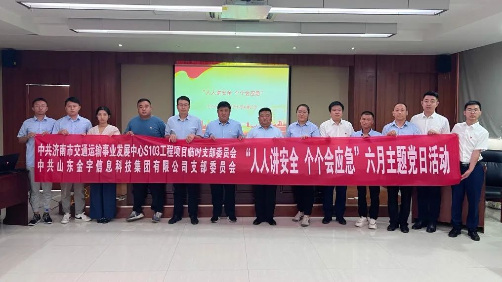 為了讓安全生產(chǎn)意識(shí)和理念深入人心,6月25日,山東金宇信息科技集團(tuán)有限公司黨支部與濟(jì)南市交通運(yùn)輸事業(yè)發(fā)展中心S103工程項(xiàng)目臨時(shí)黨支部開(kāi)展共建,共同舉辦“人人講安全·個(gè)個(gè)會(huì)應(yīng)急”安全知識(shí)競(jìng)賽暨6月主題黨日活動(dòng),S103工程項(xiàng)目相關(guān)參建單位黨員、職工代表參加本次活動(dòng)。