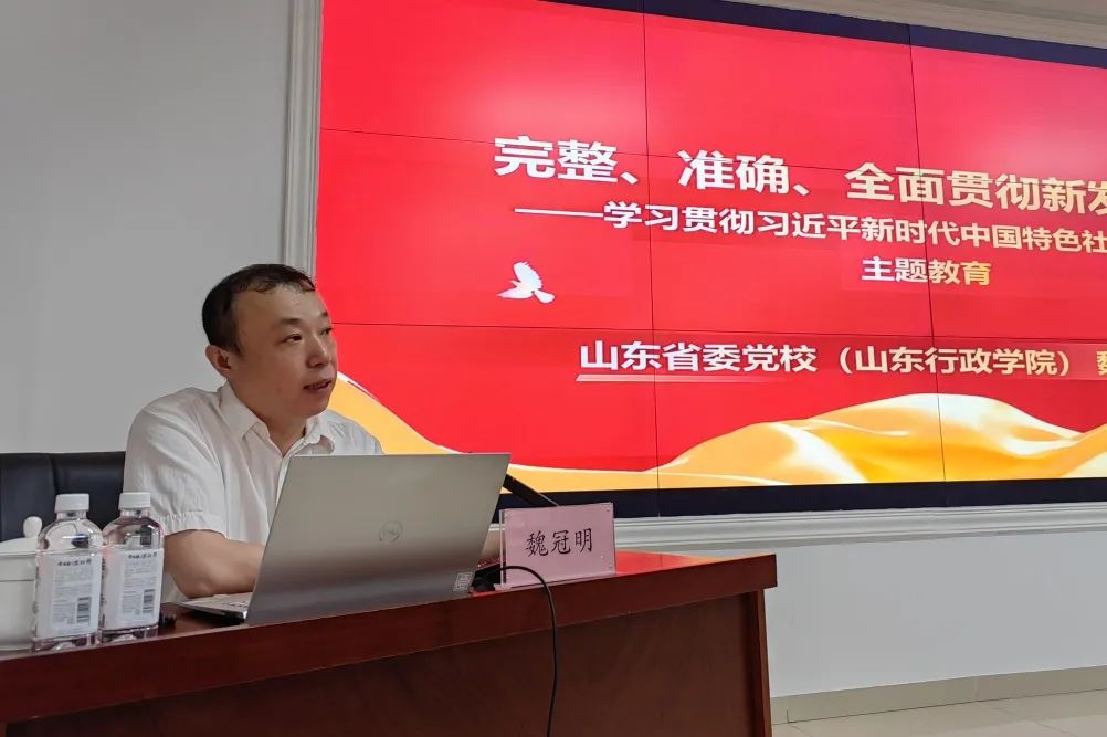 活動(dòng)邀請(qǐng)省委黨校中共黨史教研部副教授、山東省習(xí)近平新時(shí)代中國(guó)特色社會(huì)主義思想研究中心研究員魏冠明進(jìn)行專題授課,魏冠明以“完整、準(zhǔn)確、全面貫徹新發(fā)展理念--學(xué)習(xí)貫徹習(xí)近平新時(shí)代中國(guó)特色社會(huì)主義思想主題教育”為主題,全面解讀了新發(fā)展理念的內(nèi)涵要義、政策啟示和重大意義,推動(dòng)黨員干部進(jìn)一步學(xué)懂弄通做實(shí)習(xí)近平新時(shí)代中國(guó)特色社會(huì)主義思想。