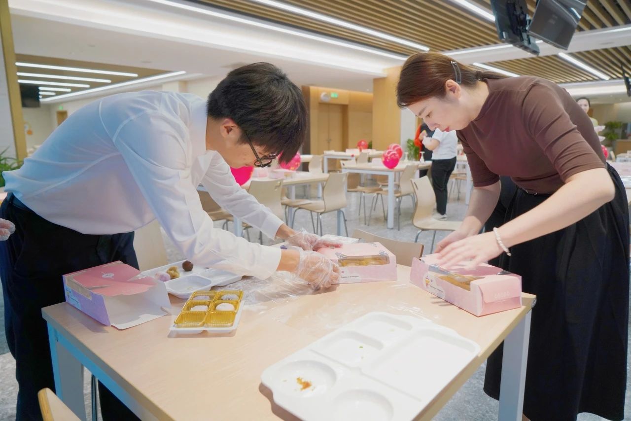 活動(dòng)現(xiàn)場,糕點(diǎn)師傅悉心指導(dǎo),員工們踴躍參與,并交流分享月餅的制作方法和文化內(nèi)涵,在動(dòng)手制作中感受傳統(tǒng)文化魅力和濃厚的節(jié)日氛圍。