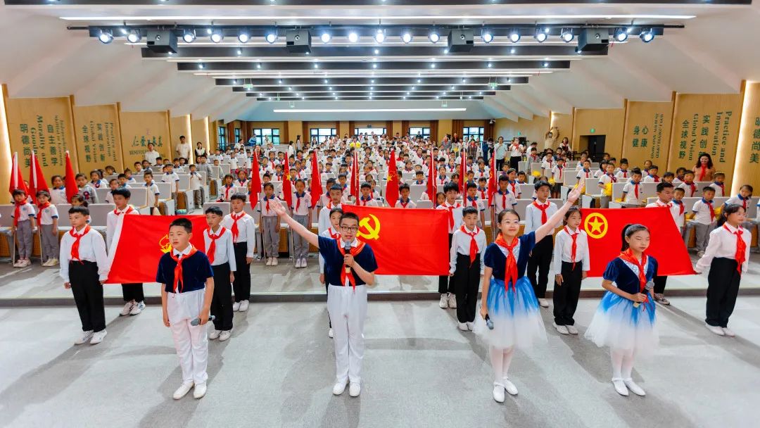 活動現(xiàn)場,與會嘉賓們?yōu)樾氯腙牭纳傧汝爢T們佩戴了紅領巾,為新建中隊授中隊旗,見證了黨、團、隊三旗傳遞,徐冬梅為孩子們送上了“六一”寄語,建設集團為孩子們贈送了入隊成長禮物。