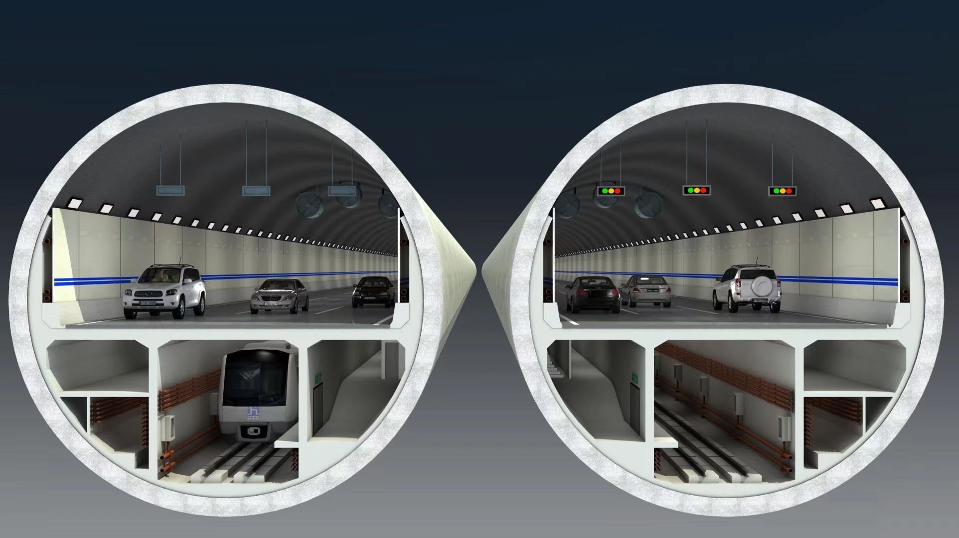 在濟(jì)南黃河濟(jì)濼路隧道行車(chē)層上,共設(shè)有34組136個(gè)廣播設(shè)備,每?jī)蓚€(gè)廣播設(shè)備間隔50米;在逃生通道中,共設(shè)有8組66個(gè)廣播設(shè)備,每?jī)蓚€(gè)廣播設(shè)備間隔75米;隧道中,已布設(shè)兩條信號(hào)泄漏光纜,確保三大運(yùn)營(yíng)商4g、5g信號(hào)無(wú)死角覆蓋和車(chē)載廣播信號(hào)全覆蓋,并在隧道應(yīng)急通道內(nèi)采用天線(xiàn)對(duì)打方式,從而實(shí)現(xiàn)手機(jī)無(wú)線(xiàn)信號(hào)覆蓋。