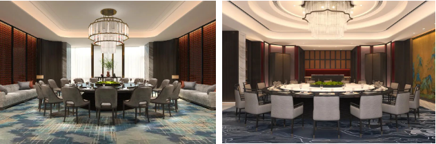 項目將宋代雅致美學(xué)融入酒店裝飾設(shè)計,分別賦予前廳、餐飲區(qū)、宴會廳以“云起”“云深”“云上”“云歸”之意,復(fù)刻世人追慕的宋人閑雅生活。