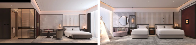 項目位于山東省濟南市槐蔭區(qū),建筑施工面積為6.19萬平方米,主要施工范圍為裙房地下1層至地上6層公共區(qū)域和主樓21層至34層客房區(qū)域的二次結(jié)構(gòu)改造、強弱電施工、給排水施工、精裝修等。其中公共區(qū)域主要施工內(nèi)容為酒店大堂、全日餐廳、茶室、餐飲包間、會議室、宴會廳、游泳池、健身房等;客房區(qū)域主要施工內(nèi)容為352套客房和行政走廊。