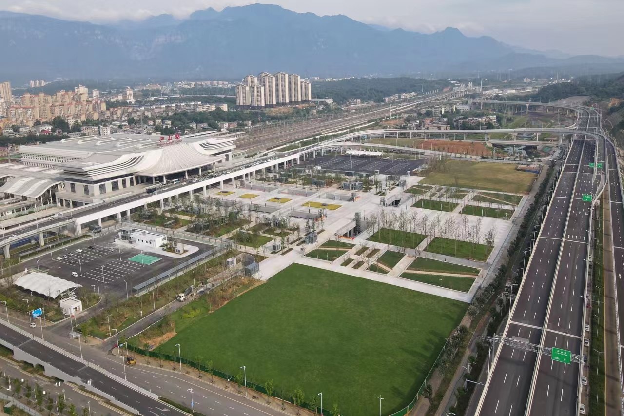 九江高鐵樞紐集散廣場(chǎng)規(guī)劃面積約5.7萬(wàn)平方米,園林綠化面積約1.7萬(wàn)平方米,工程體量大且施工繁瑣、施工標(biāo)準(zhǔn)要求高。項(xiàng)目部實(shí)行“每日現(xiàn)場(chǎng)一碰頭,每周一調(diào)度”舉措,在保障質(zhì)量安全的前提下全力推進(jìn)施工進(jìn)度,順利攻克花崗巖材料緊缺、加工周期長(zhǎng)等施工重難點(diǎn),保質(zhì)保量完成集散廣場(chǎng)各項(xiàng)施工任務(wù),為進(jìn)一步完善九江市城市交通體系貢獻(xiàn)力量。