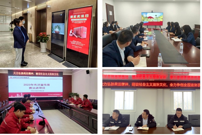 金衢公司積極開展“憲法宣傳周”系列活動(dòng),組織各黨員干部、職工觀看由司法部、全國普法辦、中央廣播電視總臺(tái)主辦的“憲法的精神法治的力量—2023年度法治人物”專題節(jié)目;在辦公區(qū)域顯要位置,使用電子顯示屏展示憲法宣傳周海報(bào)、示范創(chuàng)建標(biāo)語口號(hào);組織學(xué)法工作,重點(diǎn)加強(qiáng)黨的二十大精神、習(xí)近平法治思想,及憲法、民法典等常用法律知識(shí)學(xué)習(xí),討論交流學(xué)習(xí)心得,提升廣大干部職工法治素養(yǎng)。