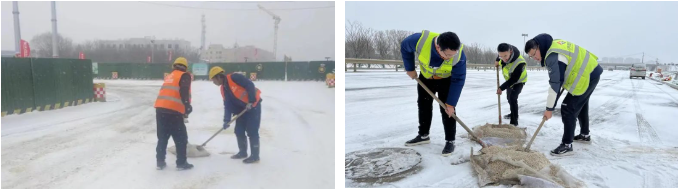 各項(xiàng)目在接到降雪預(yù)報(bào)后,按照要求提前做好各項(xiàng)清雪除冰準(zhǔn)備工作,并安排人員在崗值守,密切關(guān)注雪情路況,第一時(shí)間撒布融雪劑、鏟雪、除冰,機(jī)械作業(yè)與人工作業(yè)交替進(jìn)行,對(duì)重點(diǎn)路段進(jìn)行鏟、推、掃、堆一體化循環(huán)作業(yè),加快清理道路積雪,為來(lái)往行人車輛清理出安全整潔的通道,為市民群眾平安出行保駕護(hù)航。