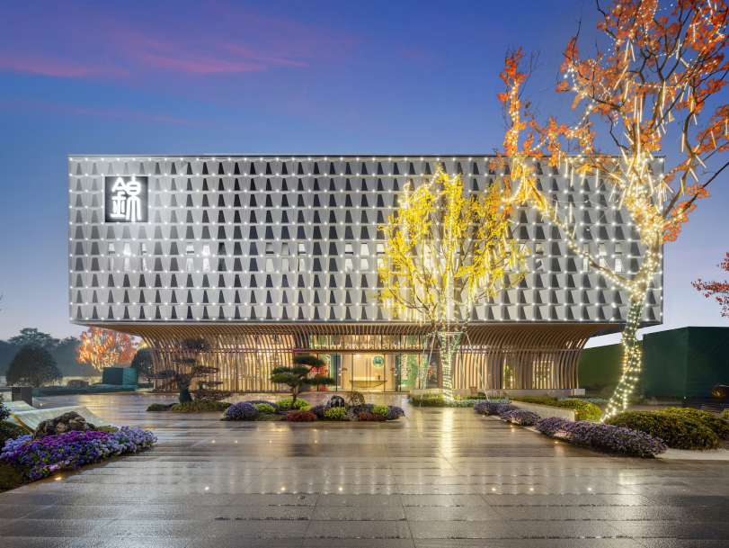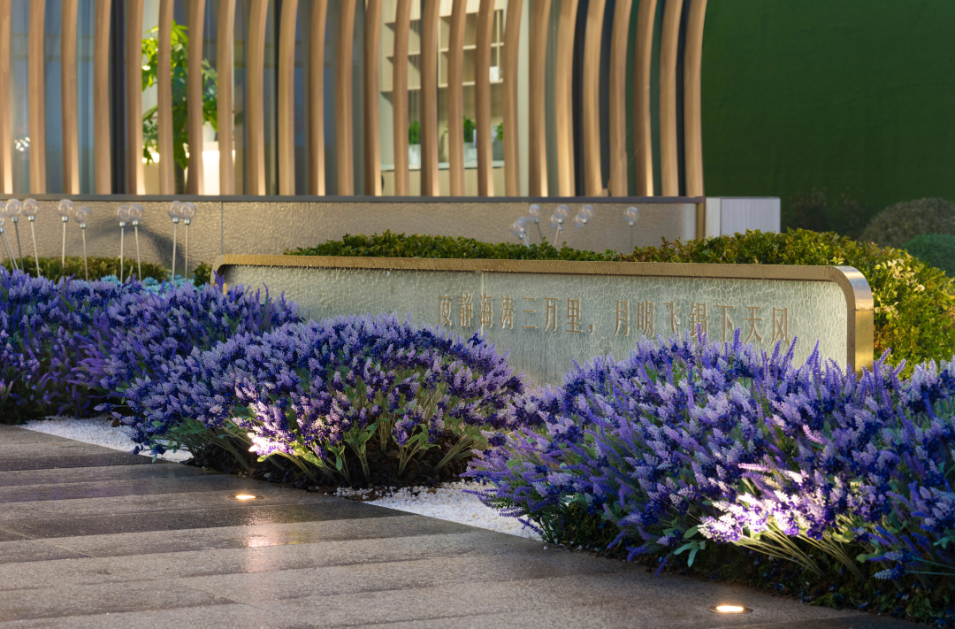 天風(fēng)錦都項目位于濟南市槐蔭區(qū),遠(yuǎn)觀風(fēng)云平靜,近看風(fēng)帆揚起,潺潺流水與汩汩噴泉的水景,加之抽象風(fēng)帆,隔離嘈雜的城市道路與車流,形成廣場藝術(shù)空間。鄰邊水景環(huán)抱,遠(yuǎn)處螢火點點,映襯建筑,大面積白色折線藝術(shù)的景墻,形成半圍合室外洽談區(qū),藝術(shù)廣場白天是中小型營銷活動的舉辦地、唯美浪漫的室外洽談區(qū),功能復(fù)合,靈活多變。