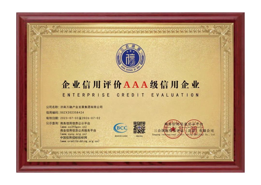 目前,公司擁有企業(yè)資信AAA等級(jí)證書、質(zhì)量服務(wù)誠(chéng)信企業(yè)AAA等級(jí)證書、重合同守信用企業(yè)AAA等級(jí)證書、誠(chéng)信經(jīng)營(yíng)示范企業(yè)AAA等級(jí)證書、重質(zhì)量服務(wù)守信用企業(yè)AAA等級(jí)證書、重服務(wù)守信用企業(yè)AAA等級(jí)證書、企業(yè)信用AAA等級(jí)證書、招投標(biāo)領(lǐng)域立信五星企業(yè)、誠(chéng)信企業(yè)家、誠(chéng)信經(jīng)理人、企業(yè)信用評(píng)價(jià)AAA級(jí)信用企業(yè)等信用認(rèn)證。