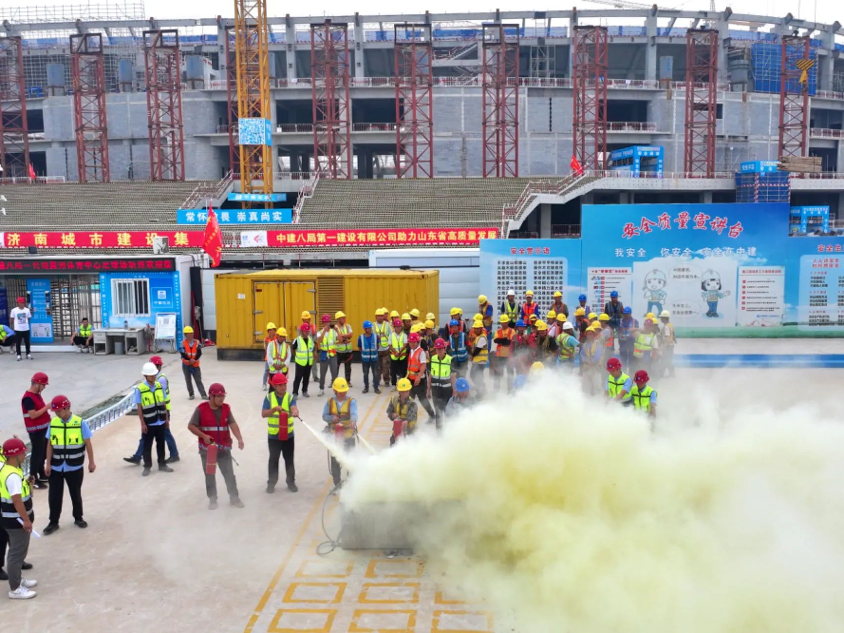 為了進(jìn)一步筑牢消防安全防線,全面提升消防救援隊(duì)伍的滅火救援能力,提高全員應(yīng)對(duì)復(fù)雜環(huán)境下的火災(zāi)處置能力,近日,集團(tuán)工程四部在黃河體育中心專業(yè)足球場項(xiàng)目組織開展2023年秋季消防應(yīng)急演練活動(dòng)。