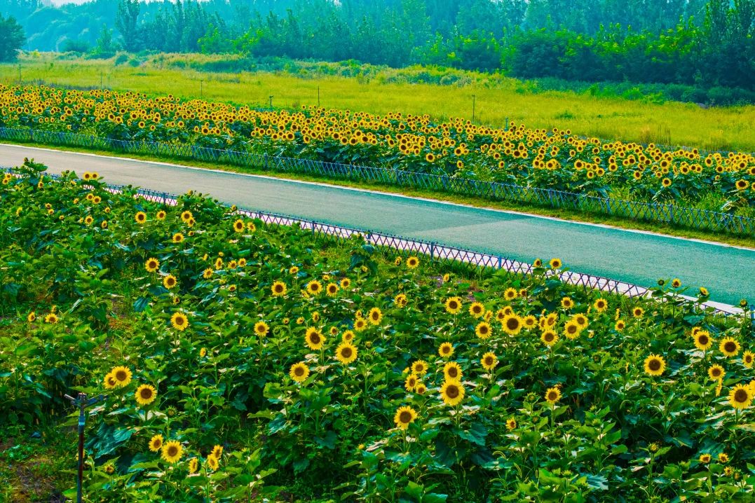 該片花海為黃河生態(tài)廊道防護林及苗圃工程項目一期淤背區(qū)農(nóng)作物,項目由建設(shè)集團工程二部受起步區(qū)管委會委托建設(shè),集團所屬濟西農(nóng)業(yè)公司具體施工種植。自2021年起,濟西農(nóng)業(yè)創(chuàng)新傳統(tǒng)作物種植模式,連續(xù)2年采用“油菜花+油葵”套種模式,打造起步區(qū)黃河北生態(tài)走廊示范段生態(tài)工程景觀,力爭“一栽一片、一綠一景”。該片花海不僅有“顏值”,還帶動產(chǎn)生了良好的經(jīng)濟效益與社會效益,成為黃河北一道靚麗的風(fēng)景線。