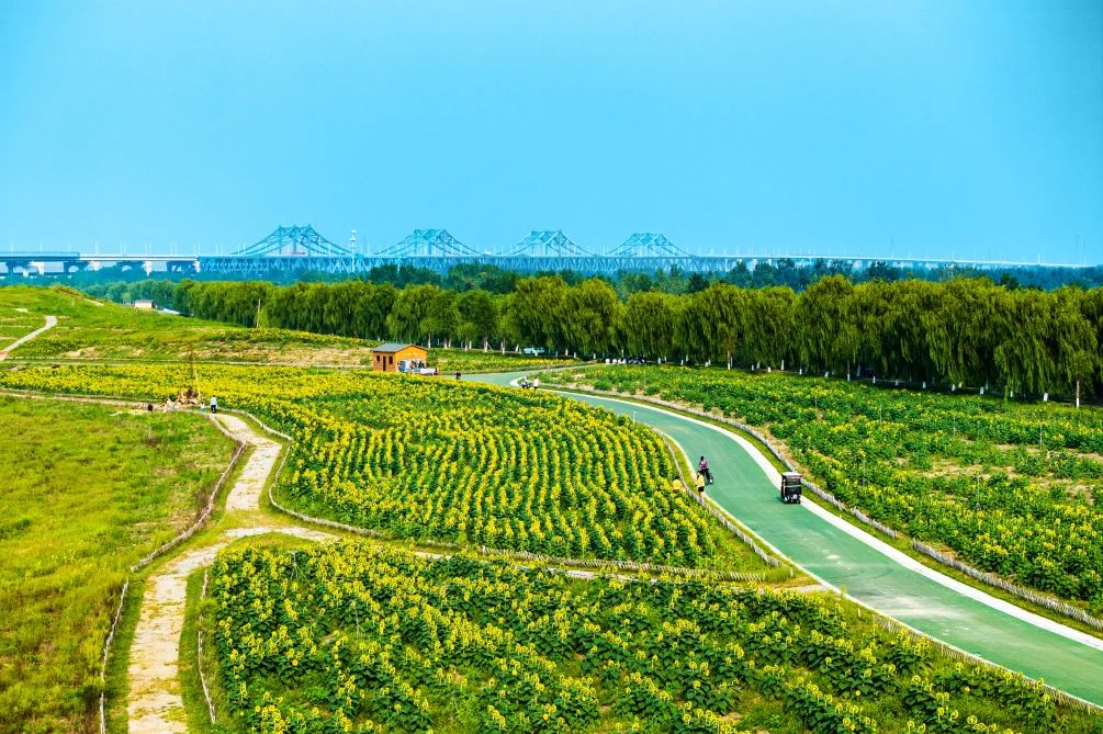 黃河公園一期位于G104與石濟客專黃河大橋之間,其中向日葵花海區(qū)域靠近石濟客專黃河大橋一側(cè),從濟南黃河大橋(老橋)北路口東行,沿著黃河北側(cè)堤頂路前行2公里即到。