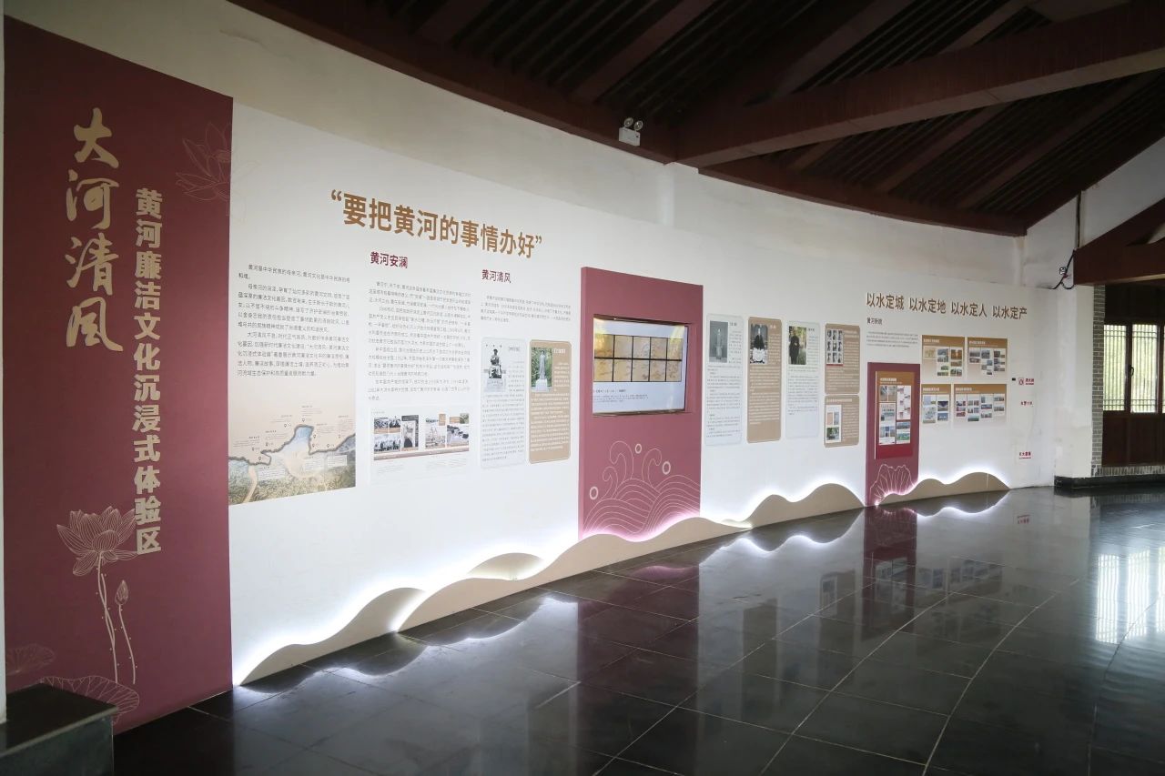 在“沐清風”展區(qū),通過“黃河安瀾”“黃河清韻”“黃河新貌”“黃河清風貫古今”四個部分,以故事為敘事載體,輔以多媒體展示,打造“大河清風”黃河廉潔文化沉浸式體驗區(qū)。