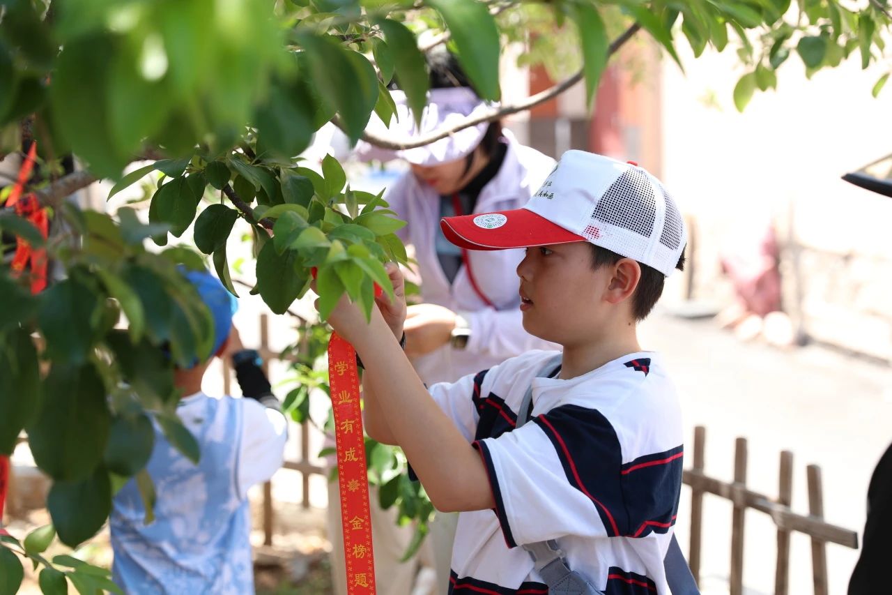 在狀元溝村,孩子們聆聽曹鴻勛狀元故事,參觀千年流蘇樹,制作并懸掛心愿卡片,在狀元門前拍照打卡,了解了狀元文化和中國古代科舉制度知識,感受了狀元溝村崇文重教的傳統(tǒng)風俗。
