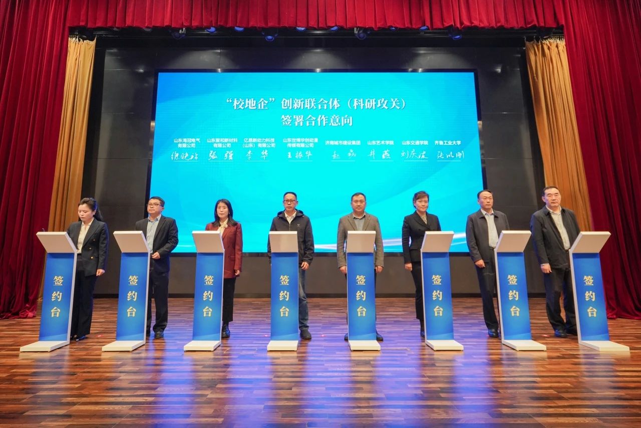 會上,建設集團與齊魯工業(yè)大學、山東交通學院、山東藝術學院等7家單位簽訂合作意向書;集團所屬山東金宇信息科技集團有限公司作為“校地企”創(chuàng)新聯合體(科研攻關)成員單位進行路演。