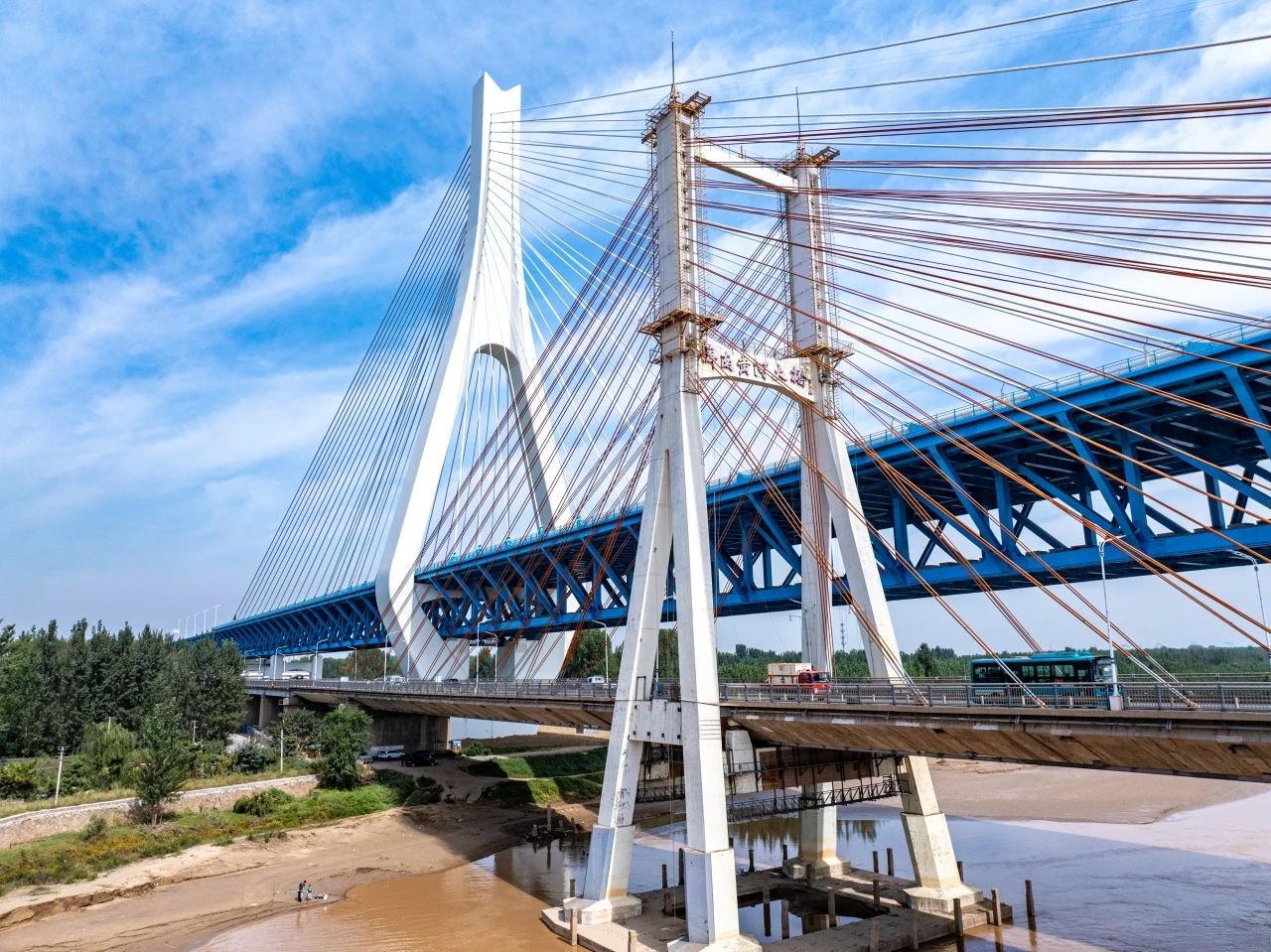 1982年7月,濟(jì)南黃河大橋(老橋)建成通車,作為當(dāng)時(shí)亞洲跨徑最大的公路斜拉橋,入選濟(jì)南“1978—1988泉城十大景觀”。如今,新橋與老橋“并肩”相望,成為黃河上第一座不等跨并橋建設(shè)工程,也是黃河上跨徑最大、鋼橋總長最長的公軌分層合建橋梁,刷新“跨黃”橋梁紀(jì)錄。