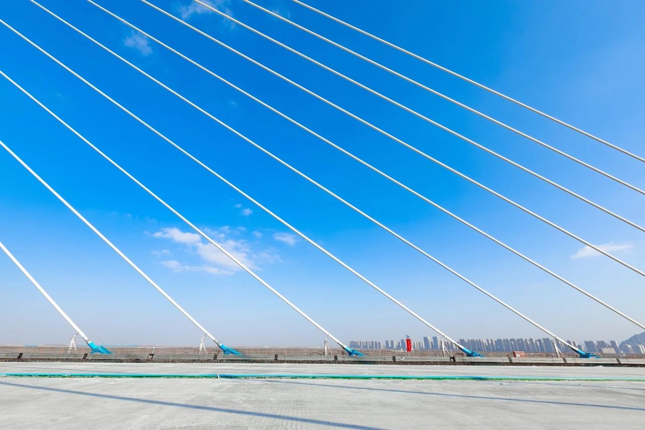 項(xiàng)目推進(jìn)中研發(fā)了超寬組合梁斷面、智能化無人值守頂推技術(shù)、高疲勞性能拉索體系等創(chuàng)新技術(shù),采用標(biāo)準(zhǔn)化設(shè)計(jì)、工廠化制造、裝配化施工。大橋采用鋼橋面+UHPC超高性能混凝土組合,大幅提高了鋼杯面的抗疲勞壽命;斜拉索采用1860MPa環(huán)氧涂層鋼紋線,具有獨(dú)特的四層保護(hù)措施,耐久性好,使用壽命長。