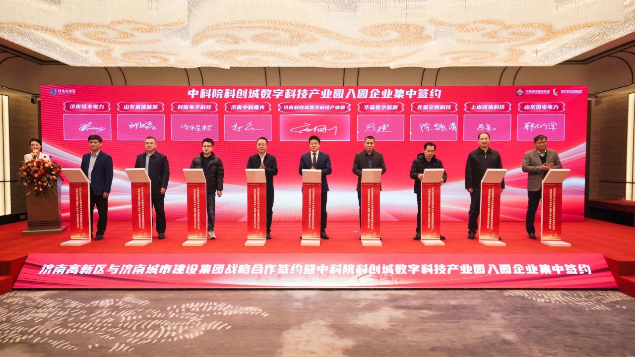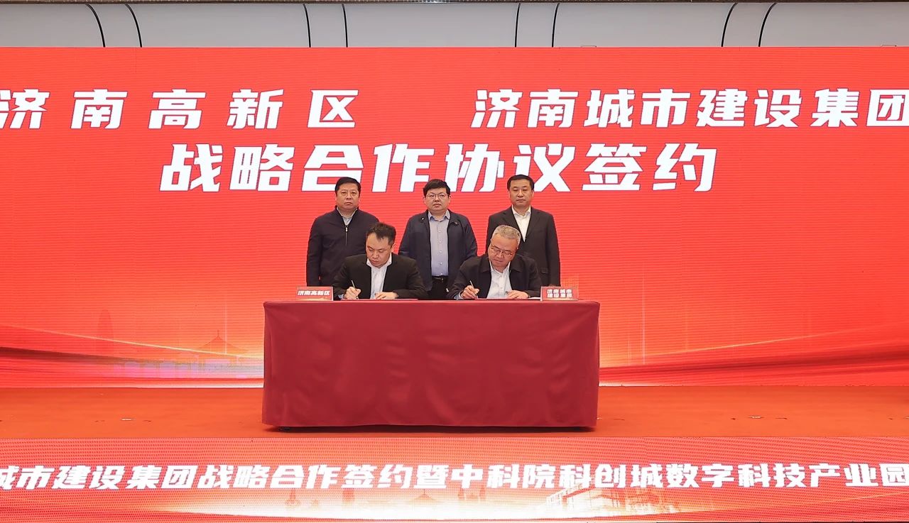 12月25日,濟南高新區(qū)與濟南城市建設(shè)集團舉行戰(zhàn)略合作簽約暨中科院科創(chuàng)城數(shù)字科技產(chǎn)業(yè)園入園企業(yè)集中簽約活動。濟南市副市長,高新區(qū)黨工委副書記、管委會常務(wù)副主任任廣鋒出席活動并見證簽約。市科技局黨組書記、局長黃波,濟南高新區(qū)管委會副主任、濟高科創(chuàng)投資集團董事長兼總經(jīng)理劉松,濟南城市建設(shè)集團黨委副書記、總經(jīng)理楊峰,建設(shè)集團副總經(jīng)理徐文東參加活動。