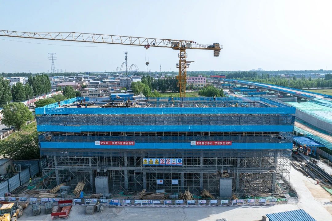 濟南黃河齊魯大橋項目全長6742米,按照雙向八車道一級公路標準建設,兼顧城市主干路功能,設計速度60公里/小時,主橋范圍為公軌合建的橋梁形式,中間預留城市軌道交通空間。此次封頂?shù)男畔枪こ炭傆玫孛娣e1.136公頃,建筑面積2758.39平方米,建成后將是項目運營管理的主要場所。