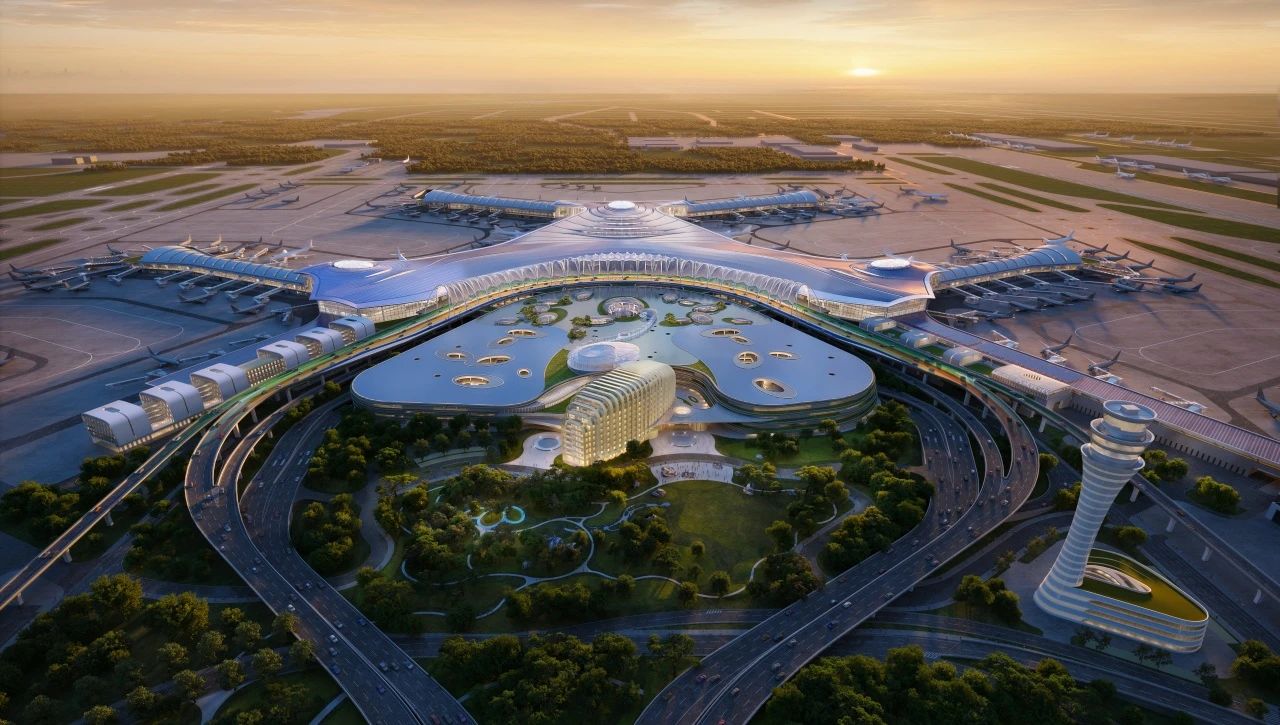 作為建設(shè)交通強(qiáng)國山東示范區(qū)的重大標(biāo)志性、引領(lǐng)性工程,濟(jì)南機(jī)場二期改擴(kuò)建工程新建60萬㎡T2航站樓,與17萬㎡現(xiàn)T1航站樓組成近80萬㎡航站樓,新建2條3600米跑道,與現(xiàn)跑道形成3跑道運(yùn)行,新建38萬㎡綜合交通中心,引入濟(jì)濱高鐵和3條地鐵。