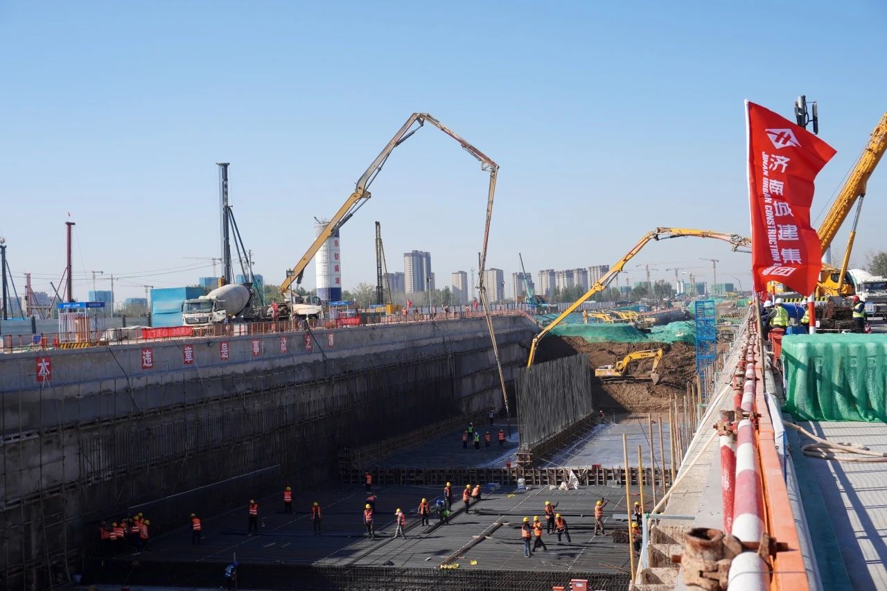 11月6日,由建設集團受委托建設的濟南新舊動能轉(zhuǎn)換起步區(qū)黃河體育會展及科技智造園區(qū)基礎設施(黃河大道二期)工程迎來關鍵節(jié)點,濟南城建集團公司施工一標段完成首件底板混凝土澆筑,為全線首段完成底板混凝土澆筑的標段。