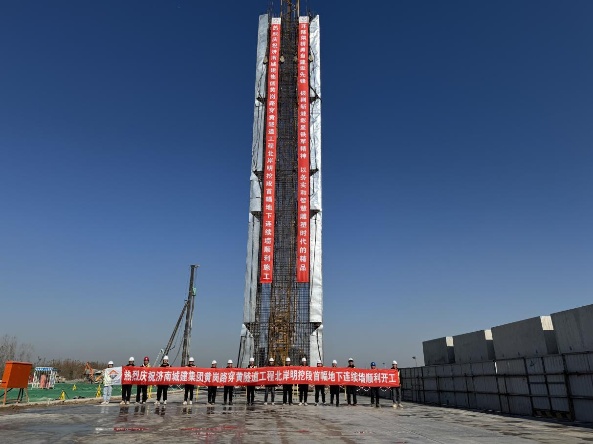 濟南黃崗路穿黃隧道工程北岸明挖暗埋段成功吊裝首幅地連墻鋼筋籠,標志著項目主體圍護結構施工取得關鍵性進展,為后續(xù)主體結構施工奠定堅實基礎。濟南市黃崗路穿黃隧道工程位于天橋區(qū)藥山街道和起步區(qū)大橋街道,工程南起二環(huán)北路以南,北至G309互通立交,城建集團公司承建工程起點至K1+338及K4+811至終點段內的明挖段、隧道鋪裝工程、地面接線道路及其附屬工程、管理中心、收費站、簡易管理用房工程等。在地連墻鋼筋籠吊裝過程中,項目團隊密切監(jiān)控鋼筋籠的起吊、移動和定位,成功將鋼筋籠緩緩吊起并精準定位到預定位置。