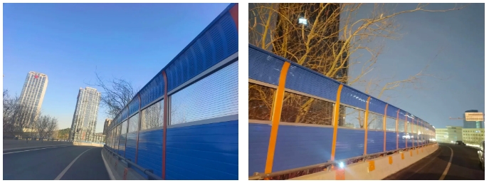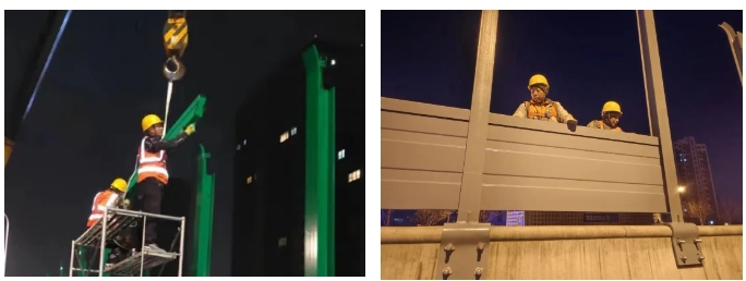 2023年濟(jì)南市聲屏障吸音降噪環(huán)保工程由建設(shè)集團(tuán)所屬山東金宇信息科技集團(tuán)有限公司承建,工程設(shè)計總長8478.06米,涉及工業(yè)北高架橋、北園高架橋、二環(huán)西高架橋、二環(huán)南高架橋、緯六路高架橋、燕山立交橋、白馬山隧道等路段。施工內(nèi)容包含2.233m、2.5m、2.683m高直弧形聲屏障以及3.5m高直弧形聲屏障、3.5m高頂部帶吸聲筒形聲屏障,部分聲屏障基礎(chǔ)采用騎馬鋼板形式、部分聲屏障基礎(chǔ)采用植入化學(xué)錨栓形式。該項目于2023年8月15日開工,歷時214天,于2024年3月15日竣工。