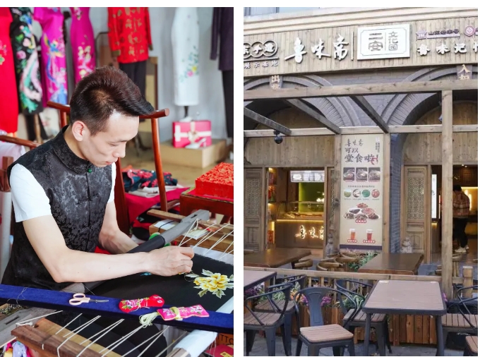 景區(qū)內(nèi)設有非物質(zhì)文化遺產(chǎn)傳習基地、戴記魯繡旗袍、魯味齋、二安文化園等非遺展示店鋪,集中展示了濟南市技、趣、鮮、醫(yī)、藝等諸多方面的人文歷史,是槐蔭區(qū)非遺文化的地標性景區(qū)。