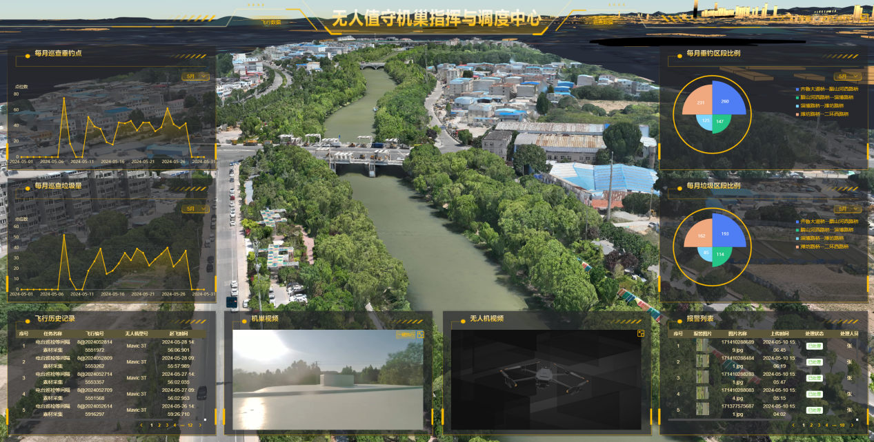 該機(jī)巢布置于湖心島,可對(duì)華山景區(qū)水面、綠化共計(jì)6.25平方公里的區(qū)域進(jìn)行日常巡檢。該機(jī)巢具備無(wú)人機(jī)定時(shí)自動(dòng)收放、飛行、充電功能,徹底實(shí)現(xiàn)無(wú)人化值守,支持對(duì)無(wú)人機(jī)及載荷遠(yuǎn)程控制。同時(shí),自主巡檢系統(tǒng)通過(guò)AI算法,對(duì)無(wú)人機(jī)獲取的低空原始數(shù)據(jù)定位分析,如發(fā)現(xiàn)問題,經(jīng)管理專員核查后,可通過(guò)業(yè)務(wù)處理平臺(tái)app派發(fā)至運(yùn)營(yíng)人員銷項(xiàng)處理。