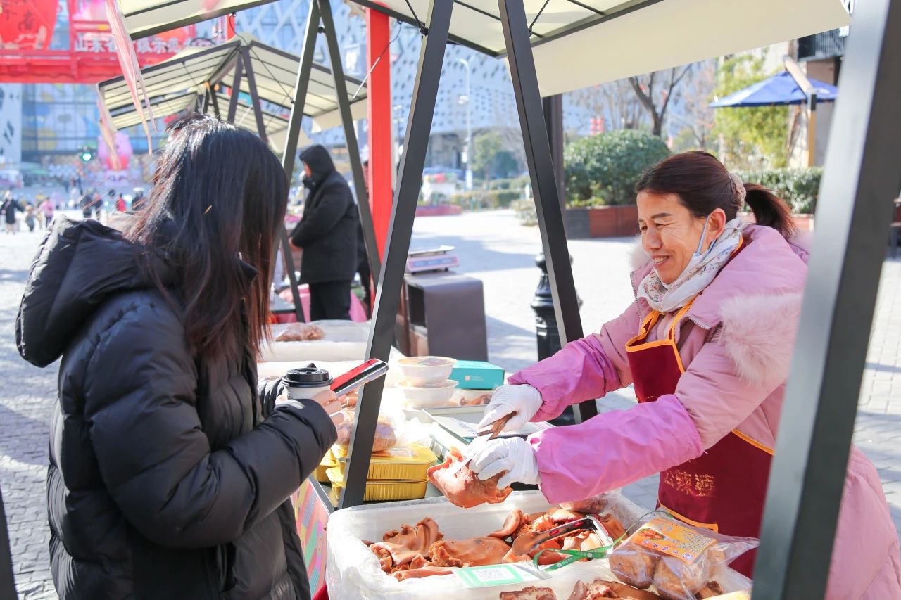 本次活動現場設置展位40余個,商河縣、槐蔭區(qū)興福街道、鋼城區(qū)顏莊街道及建設集團共40余位駐村“第一書記”為市民游客帶來了百余種特色農副產品。其中,商河大酥梨、玉皇廟豆腐皮、玉皇廟核桃酥、七彩野雞蛋、古梨醋飲、梨膏糖、臘八蒜、香酥煎餅、芝麻香油、泉水粉皮等優(yōu)質農特產品“出村進城”,與廣大游客朋友見面,全方位展示了當地豐富的農業(yè)資源和獨特的農副產品,有力推動農業(yè)與文化旅游的深度融合,為鄉(xiāng)村振興注入新的活力。