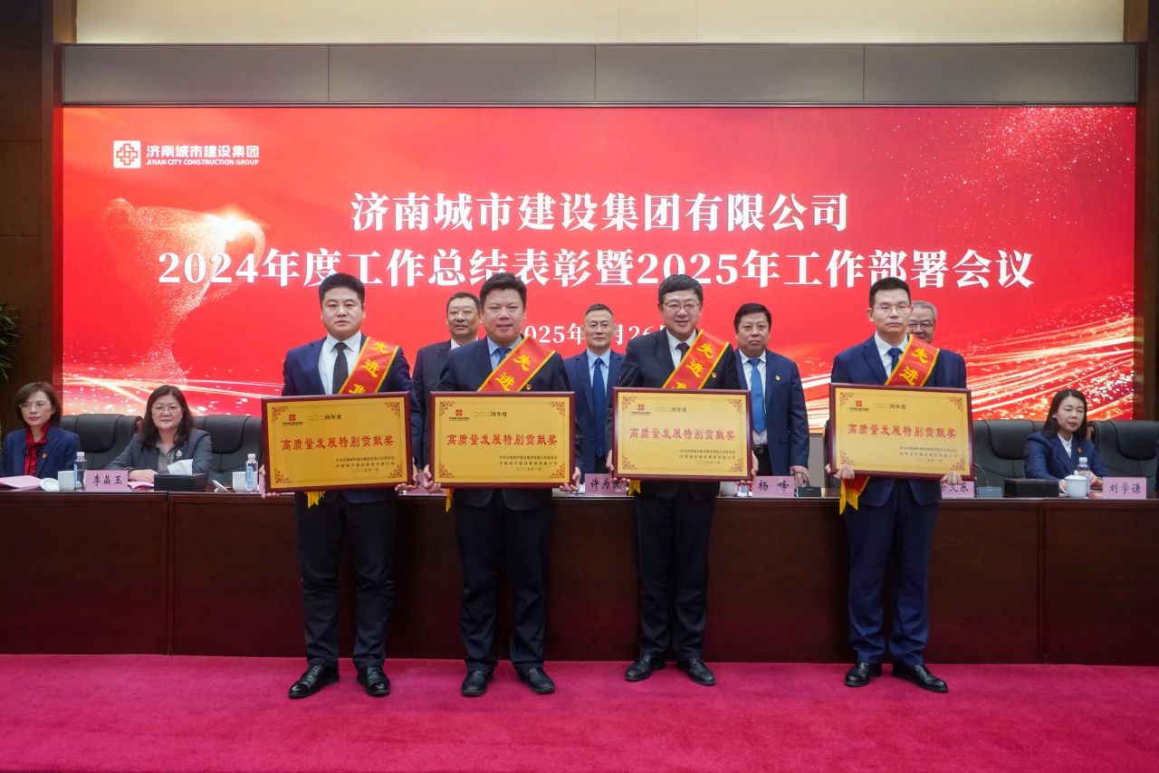 會(huì)議授予集團(tuán)財(cái)務(wù)管理部、濟(jì)南城建集團(tuán)有限公司、濟(jì)南金曰公路工程有限公司、山東貫月科創(chuàng)投資集團(tuán)有限公司“高質(zhì)量發(fā)展特別貢獻(xiàn)獎(jiǎng)”,以表彰其在集團(tuán)高質(zhì)量發(fā)展中作出的突出貢獻(xiàn)。