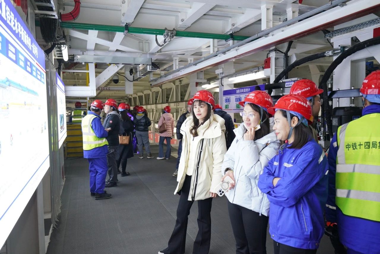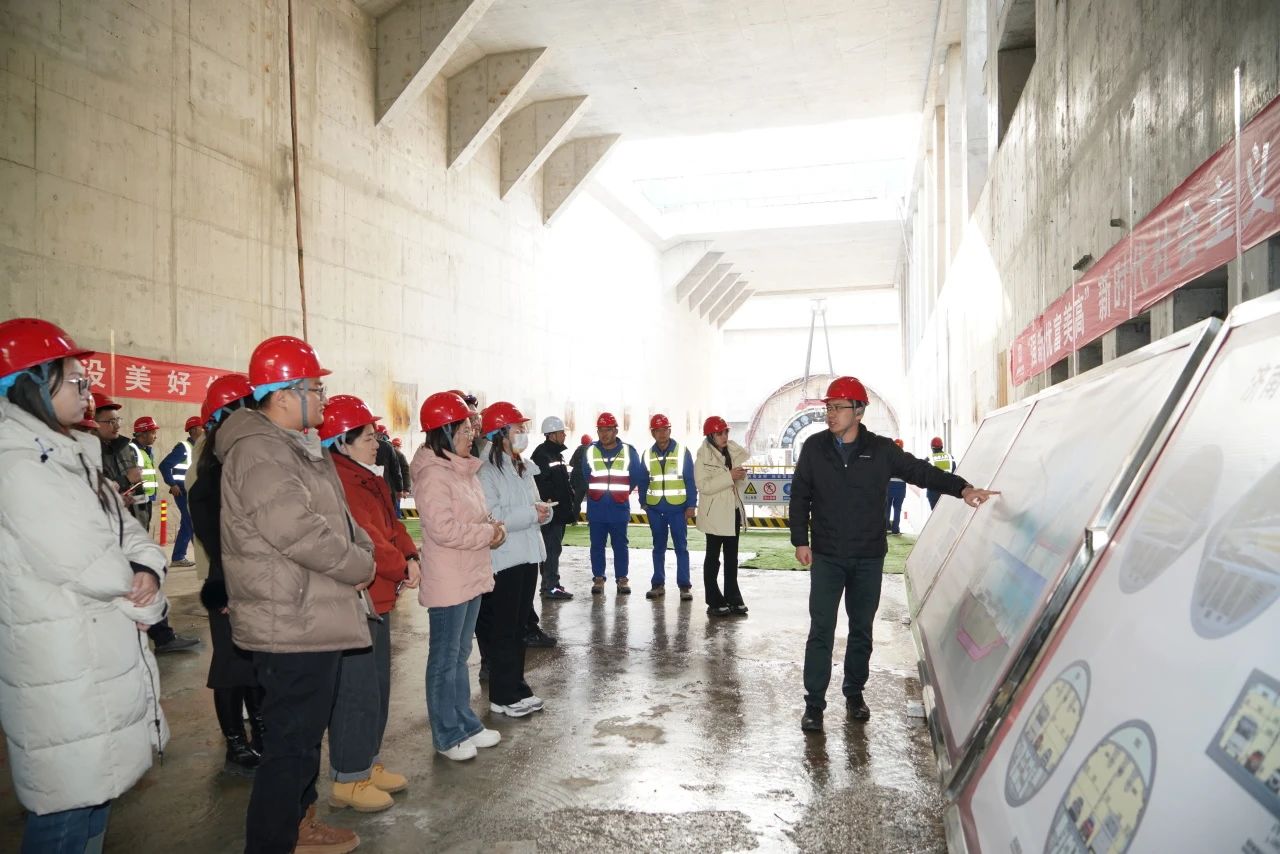 在濟(jì)南市黃崗路穿黃隧道,媒體記者參觀隧道展廳,前往盾構(gòu)施工現(xiàn)場(chǎng)詳細(xì)了解項(xiàng)目建設(shè)推進(jìn)情況及施工保障管理措施。