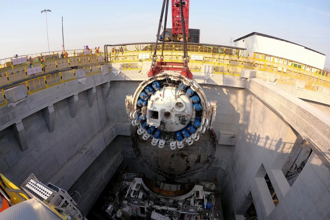 濟(jì)南市黃崗路隧道線路全長(zhǎng)約5.8公里,其中隧道段長(zhǎng)約4.8公里,盾構(gòu)段長(zhǎng)約3.3公里。隧道采用單洞雙層外徑16.8米的盾構(gòu)隧道方案,道路等級(jí)為城市主干路標(biāo)準(zhǔn)設(shè)計(jì),雙向6車道,設(shè)計(jì)速度60公里/小時(shí),項(xiàng)目盾構(gòu)開挖直徑17.5米,為世界最大直徑水下盾構(gòu)隧道。項(xiàng)目2024年5月19日盾構(gòu)機(jī)下線,9月1日掘進(jìn)始發(fā),目前盾構(gòu)掘進(jìn)正有序推進(jìn)中,計(jì)劃2025年底實(shí)現(xiàn)隧道貫通。期間,盾構(gòu)月進(jìn)尺突破426米,刷新17米級(jí)超大直徑盾構(gòu)施工最快世界紀(jì)錄。