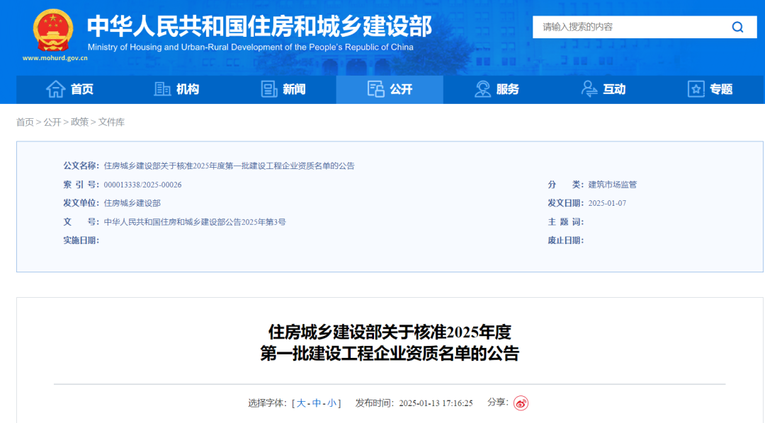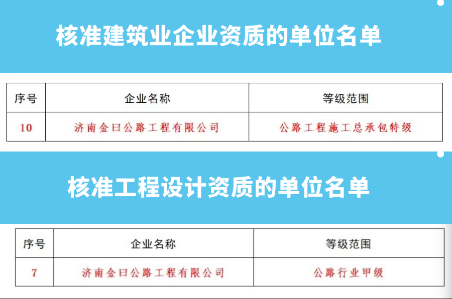 1月13日,住房和城鄉(xiāng)建設(shè)部發(fā)布《住房城鄉(xiāng)建設(shè)部關(guān)于核準(zhǔn)2025年度第一批建設(shè)工程企業(yè)資質(zhì)名單的公告》,濟(jì)南城市建設(shè)集團(tuán)所屬濟(jì)南金曰公路工程有限公司獲評公路工程施工總承包特級資質(zhì)和工程設(shè)計公路行業(yè)甲級資質(zhì)。