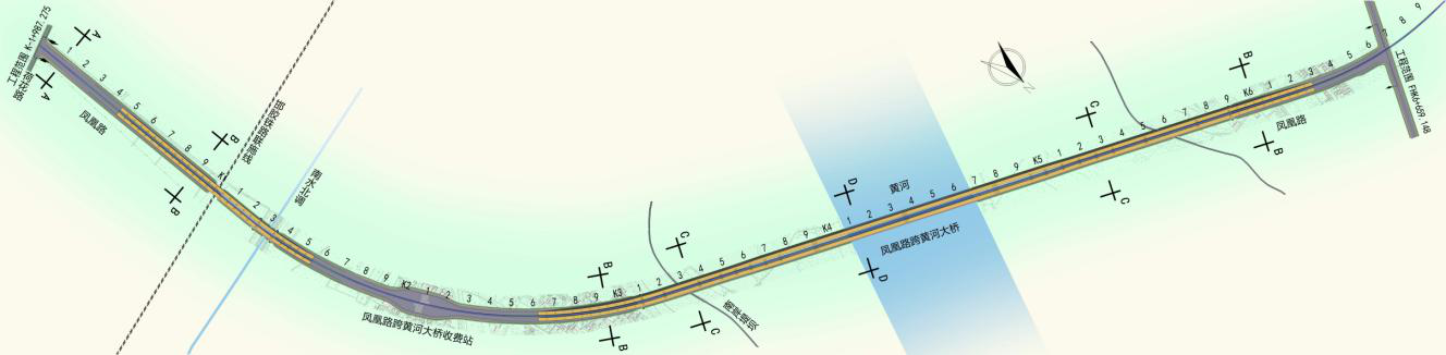 鳳凰路北延工程位于濟南市歷城區(qū)、高新區(qū)、濟陽縣,路線南起壩王路與荷花路交叉口,接現(xiàn)狀壩王路,依次跨越邯膠鐵路聯(lián)絡線、南水北調(diào)工程濟東明渠后繼續(xù)往北,在小河套村向西北方向延伸,跨越黃河后,終點位于遠期規(guī)劃主干路與G220交叉口處。項目全長6659.2米,其中,黃河特大橋長度為3668米,兩端接線長度為2991.2米,包括大橋1座,平面交叉2處,涵洞11道。